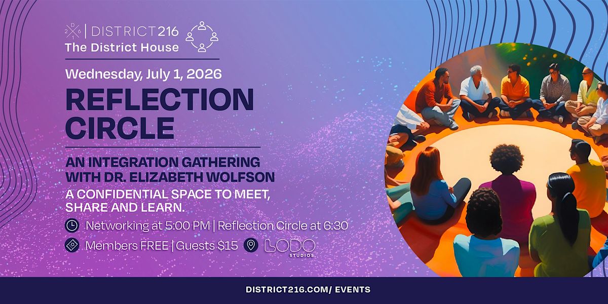 District216 is proud to host this confidential Reflection Circle for members and guests seeking thoughtful integration of psychedelic experiences. Together, we gather around stories, insights, challenges, hopes, and questions—creating space to process non-ordinary states of consciousness with care, presence, and community support. Guided by a licensed professional facilitator, participants are invited to reflect, listen, and share (as feels right) in a supportive, non-judgmental environment designed to help translate experiences into grounded, purposeful living.