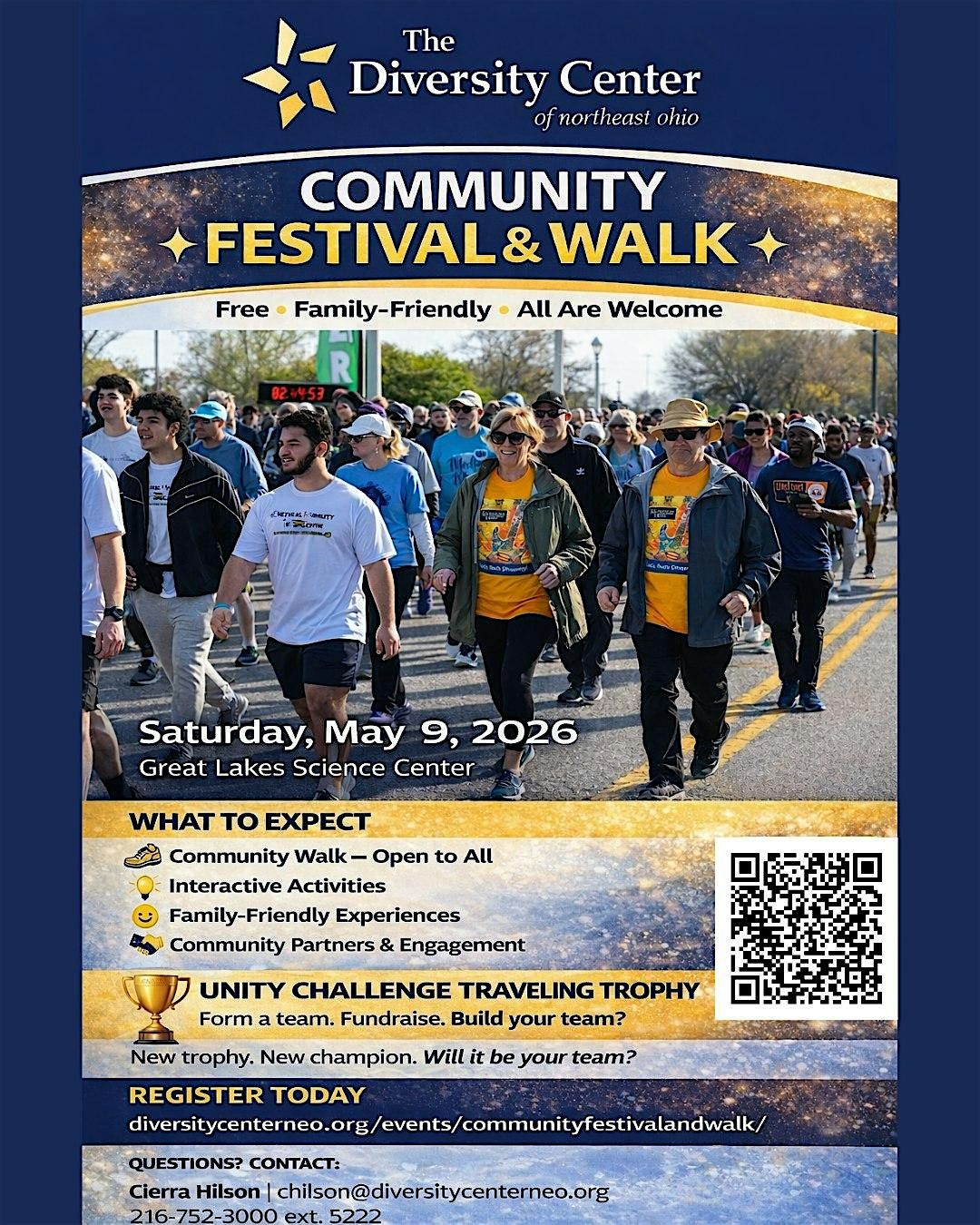 The Diversity Center of Northeast Ohio (DCNEO) would like you, your family, and neighbors to join us at the DCNEO Community Festival & Walk on Saturday, May 9, 2026. Formerly known as Walk, Rock, Roll & Run, this year’s event returns to the Great Lakes Science Center with a renewed focus on what matters most: connection, community, and the simple belief that everyone deserves to belong.