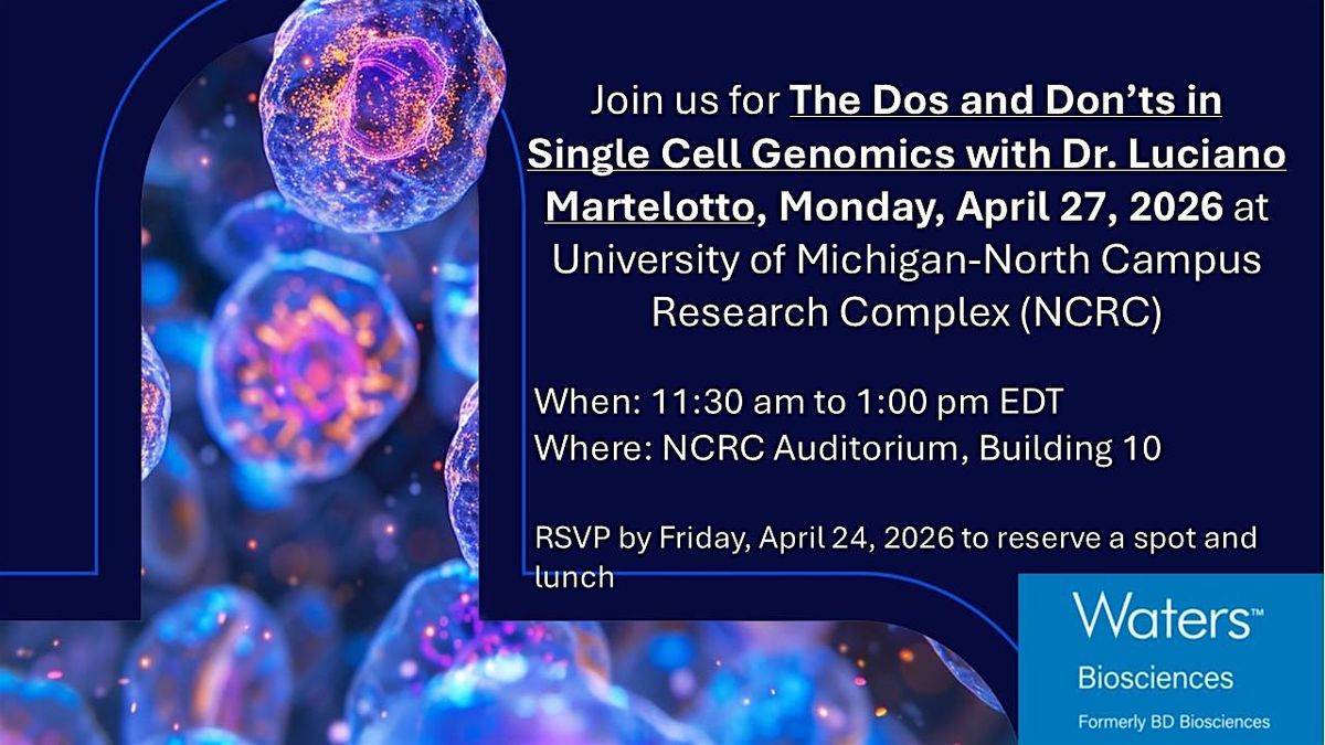 Join us for an in-person seminar featuring Dr. Luciano Martelotto, a recognized leader in genomics and technology innovation and currently the Global Market Development Director at Waters (formerly BD). In this session, Dr. Martelotto will share practical insights into the dos and donβts of working with single cells, drawing from real-world experience and cutting-edge applications.