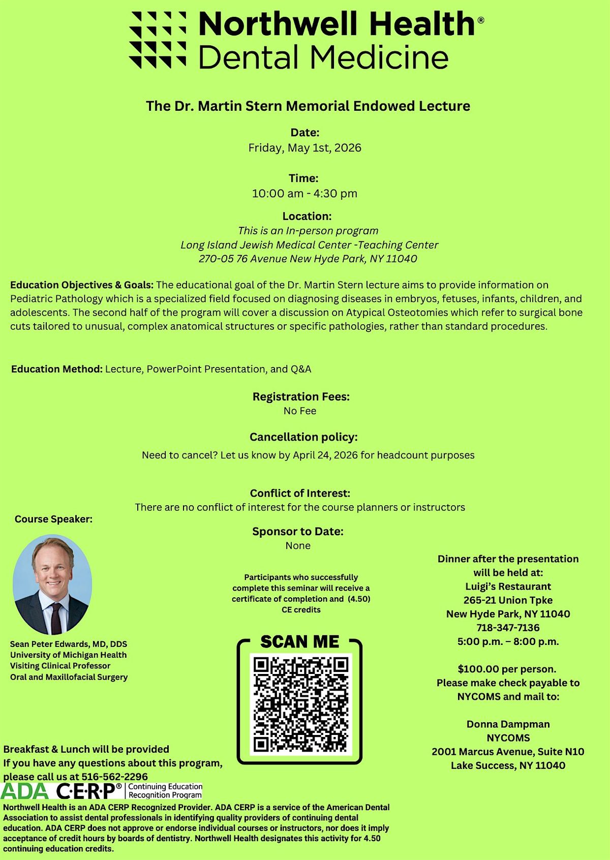 Don’t miss out on this awesome experience—come ready to learn and have fun! Northwell Health is an ADA CERP Recognized Provider. ADA CERP is a service of the American Dental Association to assist dental professionals in identifying quality providers of continuing dental education. ADA CERP does not approve or endorse individual courses or instructors, nor does it imply acceptance of credit hours by boards of dentistry. Northwell Health designates this activity for 4.50 continuing education credits.