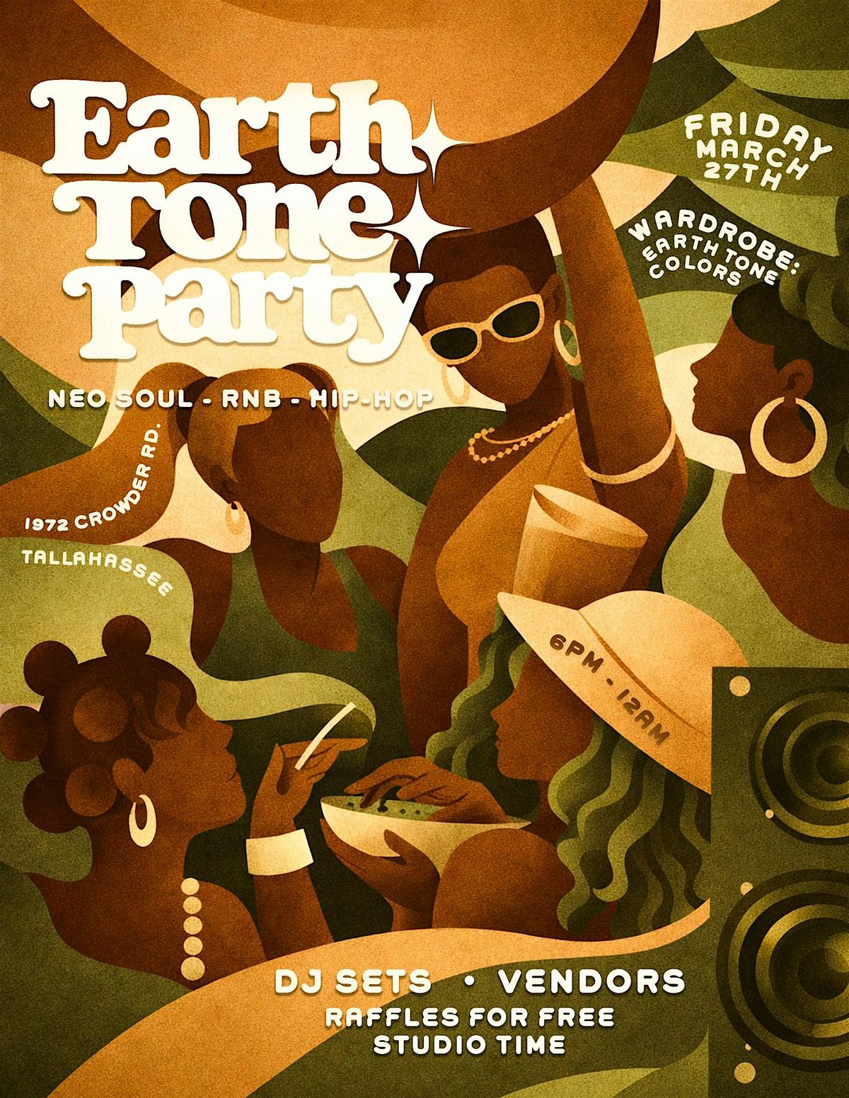 The Earth Tone Party is a curated night of music, style, and creative energy held Friday, March 27th from 6 PM to 12 AM at Gated Community Studios. DJs set the tone with smooth selections of neo soul, hip hop, house, and laid back grooves while local vendors bring art, fashion, and handmade goods into the space. Guests are encouraged to arrive dressed in earth tone colors like brown, olive, tan, rust, and cream, creating a warm and unified atmosphere throughout the room. The night blends music, culture, and community into one space where people can dance, connect, and enjoy a soulful, grounded vibe.