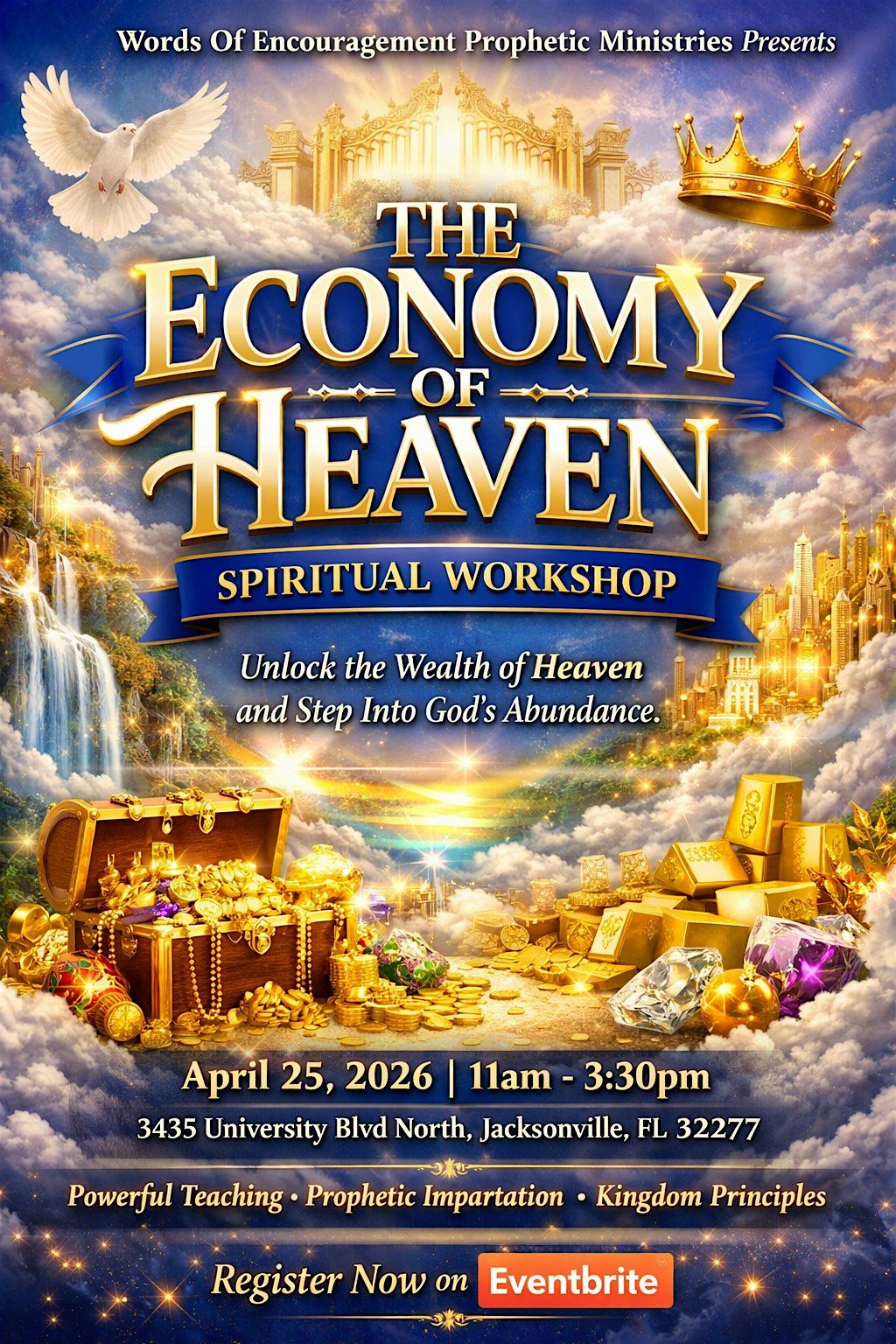 This transformational workshop is designed to unlock revelation concerning kingdom wealth, stewardship, provision, and supernatural supply. Many believers are unaware that Heaven has an economy, one not governed by the world's systems, but by faith, obedience, alignment, and divine strategy.