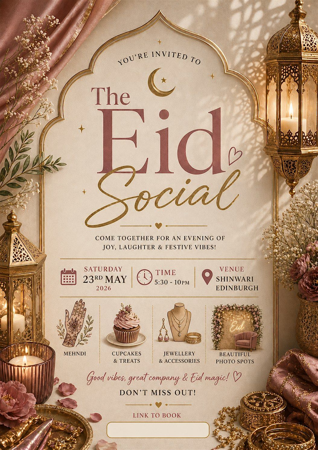 Get ready for a magical pre-Eid celebration filled with elegance, culture, and unforgettable moments ✨ A night designed to bring people together in a beautiful setting with a festive atmosphere and lots of surprises.