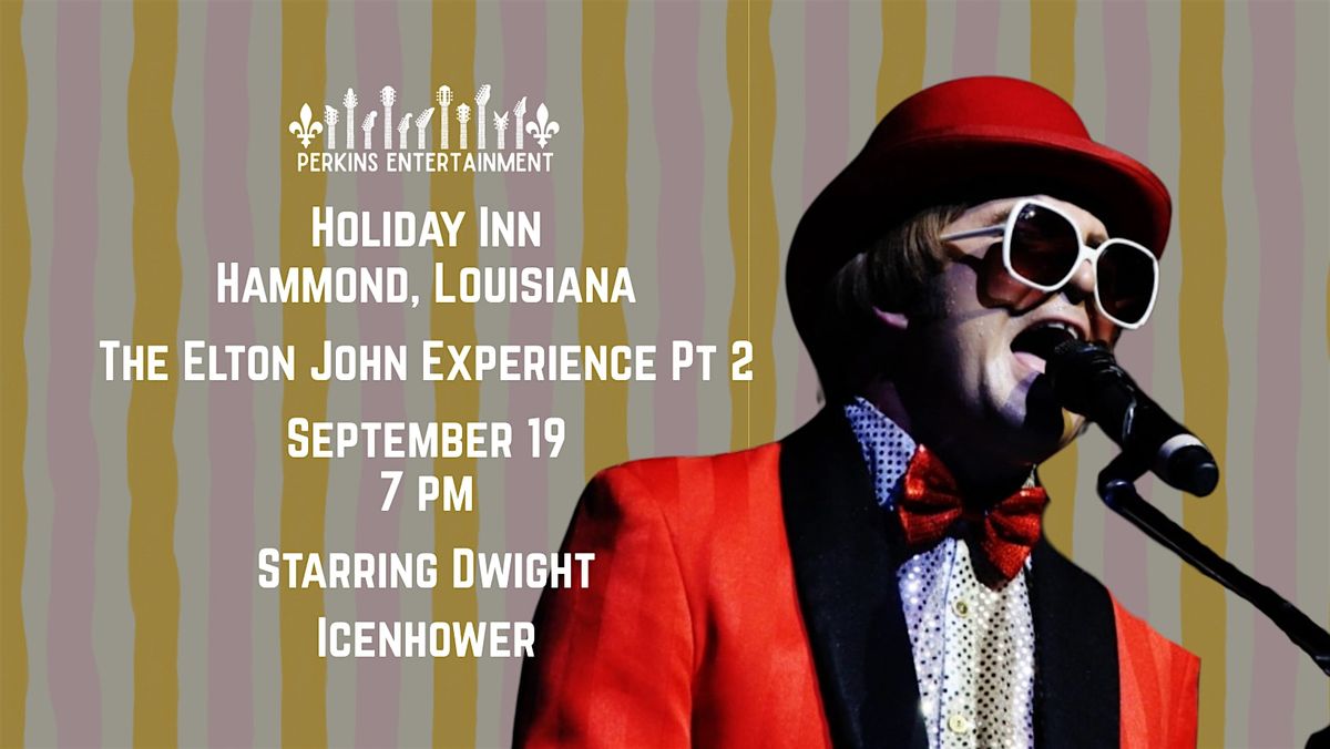 Dwight Icenhower lights up the stage as Elton John at Holiday Inn Hammond — a Vegas-style show full of hits, flair, and fun!