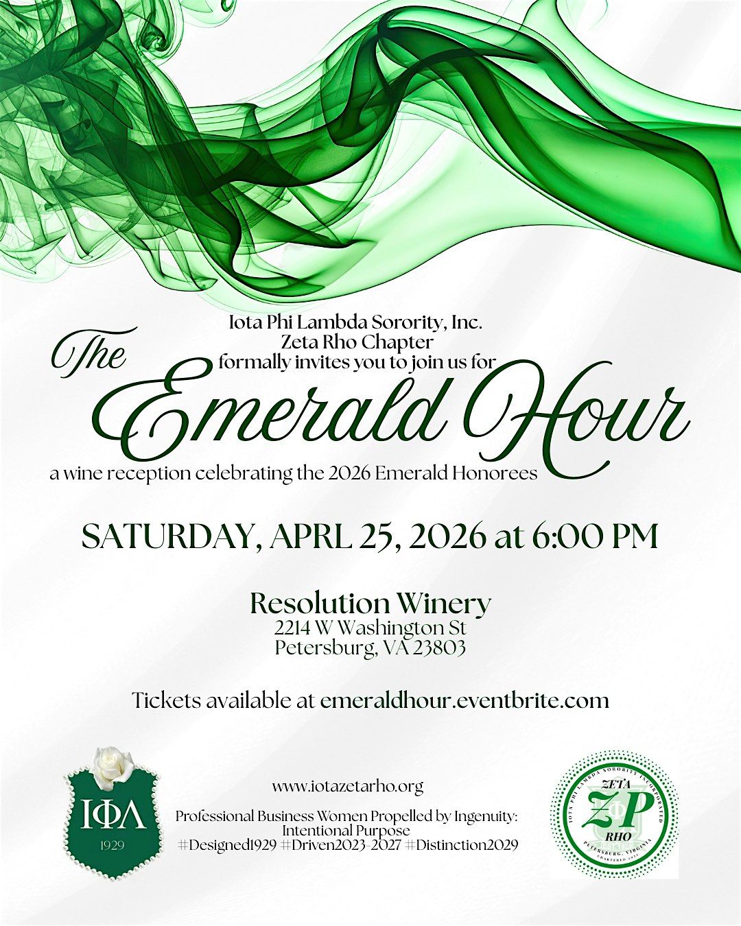 Join the Zeta Rho Chapter of Iota Phi Lambda Sorority, Inc. for The Emerald Hour—an elegant wine reception honoring the remarkable women selected as our 2026 Emerald Honors finalists and award recipients.