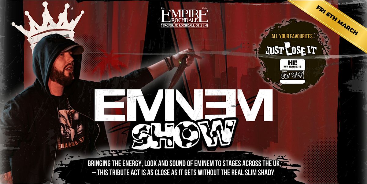 Step into the world of one of rap’s biggest icons with The Eminem Show, bringing all the energy, attitude and hits of Eminem to Empire Rochdale.