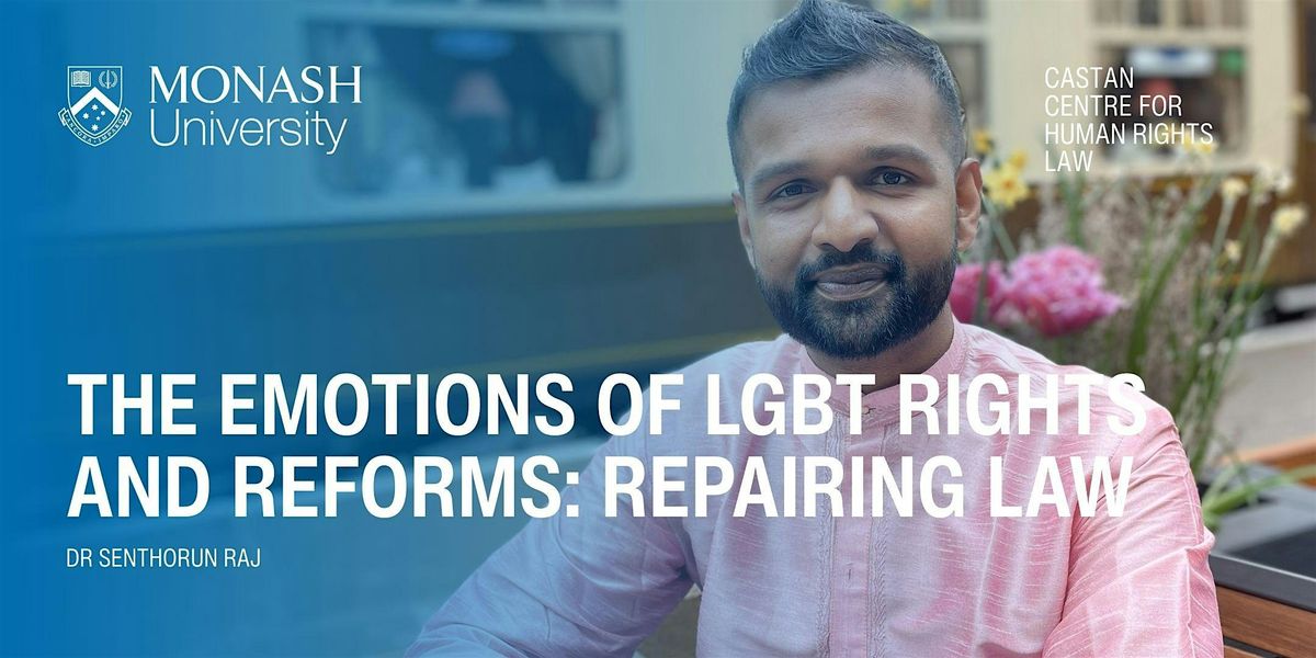 Associate Professor Senthorun Raj will reflect on his new monograph, The Emotions of LGBT Rights and Reforms: Repairing Law (Edinburgh University Press, 2025). In conversation with Castan Centre member Professor Paula Gerber, Sen will discuss contemporary law reform debates about LGBT rights, including religious exceptions to anti-discrimination laws, legal gender recognition, and sex and LGBT education in schools in various countries, including Australia, the United Kingdom and United States.