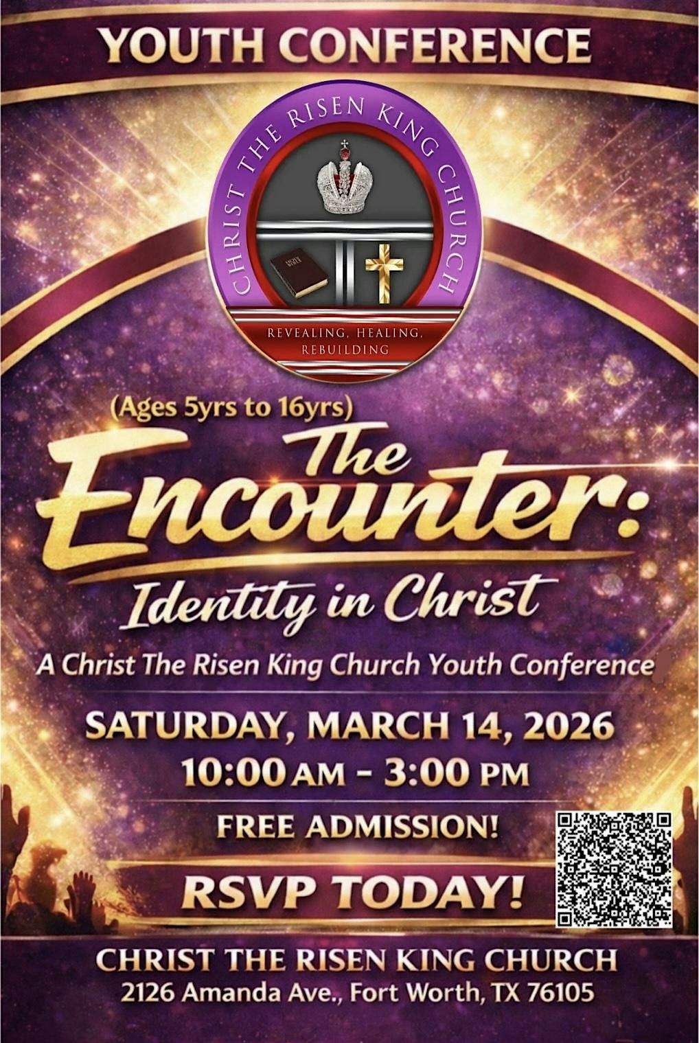 Get ready for an amazing in-person experience at The Encounter Youth Conference! Dive deep into discovering your identity in Christ with inspiring talks, fun activities, and a chance to meet awesome people just like you. Don’t miss out on this powerful time of growth, friendship, and faith. It’s all about connecting, learning, and celebrating who you truly are in Christ. Can’t wait to see you there!