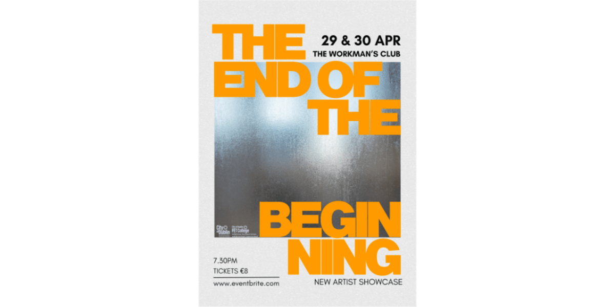 A change is in the air. The End of the Beginning is upon us, and we want you to be a part of it. City of Dublin FET College Ballyfermot are hosting the annual end of year showcase and you won't want to miss what we have in store. Two nights full of artistic expression, varying from large scale soundscapes to intimate moments, controlled and chaotic.
