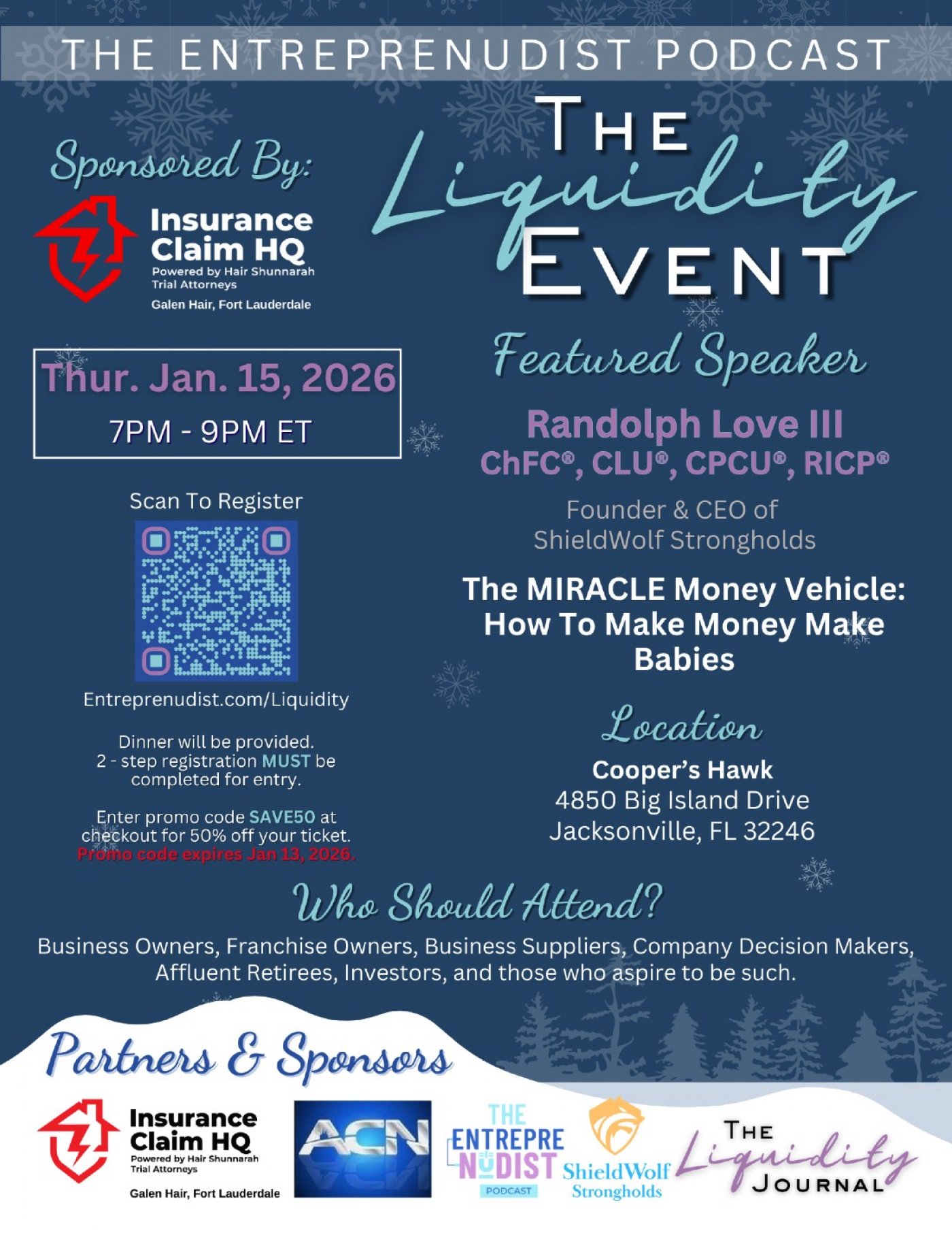 Don’t miss this unique opportunity to enhance your professional relationships and make meaningful connections. Register now!: https://entreprenudist.com/janliquidity . Use promo code SAVE50 for 50% off your ticket.