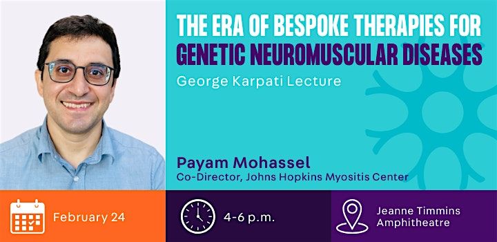 Bio: Dr. Mohassel is a physician scientist who specializes in myopathies, muscular dystrophies, and other hereditary neuromuscular disorders. He is also the co-director of the Johns Hopkins Myositis Center and a myopathologist. Dr. Mohassel obtained his medical degree from the Johns Hopkins University School of Medicine, where he remained for a medical internship, residency training in neurology, and clinical fellowship training in neuromuscular medicine. He then joined the National Institute of Neurological Disorders and Stroke Neurogenetics branch as a clinical research fellow under the mentorship of Prof. Carsten Bonnemann for 8 years, before returning to Johns Hopkins department of Neurology as faculty. Dr. Mohassel’s research focuses on translational studies in neurogenetic, neuromuscular disorders, and it spans gene discovery efforts, mechanistic studies to identify therapeutic targets, and early phase interventional clinical trials for rare neuromuscular diseases.