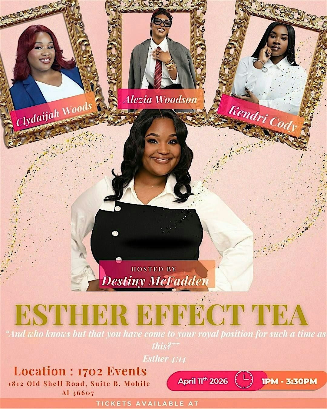 The Esther Effect Tea is a Christ-centered gathering designed to inspire, encourage, and empower women and young ladies through fellowship, reflection, and biblical teaching. Centered around the story of Queen Esther in the Book of Esther, this special tea highlights the power of courage, faith, obedience, and purpose in the life of a woman chosen by God.