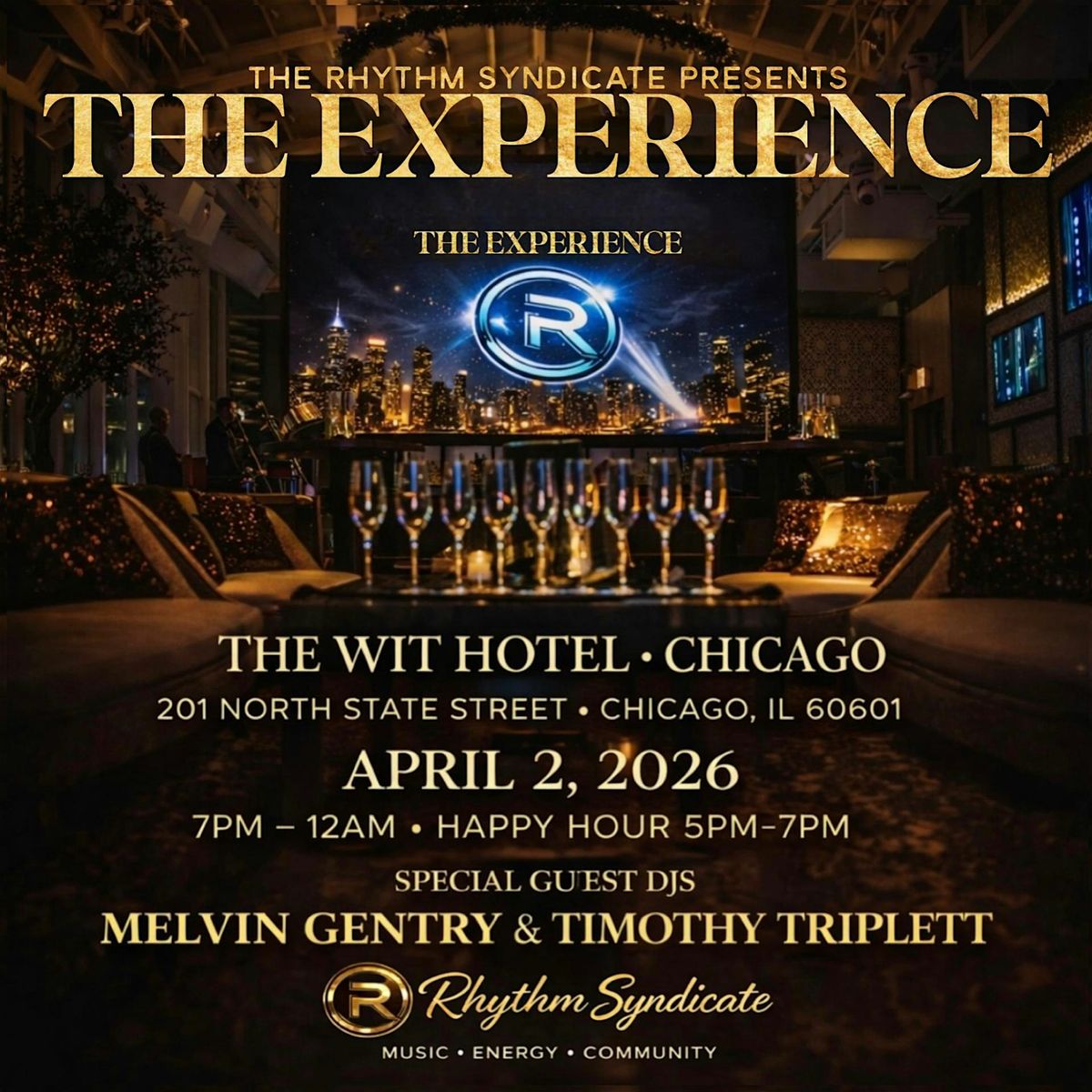 Featuring the Rhythm Syndicate DJs and Special Guest DJs Melvin Gentry & Timothy Triplett, this gathering at The Wit Hotel’s indoor rooftop promises luxe vibes, deep rhythms, vibrant energy, and a crowd that knows how to move.