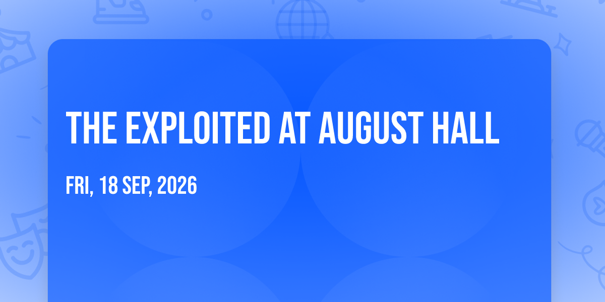 🎉 Prepare to be amazed at The Exploited at August Hall, the most anticipated gathering of the season! 🌟 Set against the stunning backdrop of August Hall in vibrant San Francisco, CA, this event promises to redefine your expectations. 📅 Mark your calendars for September 18th, 2026 at 08:00 PM and get ready to immerse yourself in an atmosphere of wonder and excitement. ✨ From the moment you arrive, you'll be transported into a world where memories are made and stories come alive. They have crafted an experience that perfectly harmonizes entertainment, innovation, and community spirit. 🌈 Join us as we create moments that will be discussed for years!