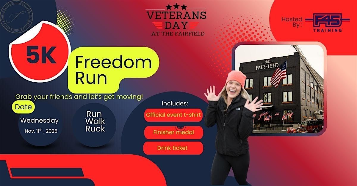 Join us this Veterans Day for The Fairfield Freedom Run 5K hosted by F45 Training at The Fairfield. Whether you choose to run, walk, or take on the ruck division, this event is a great way to honor those who have served while supporting our Veterans Day celebration.