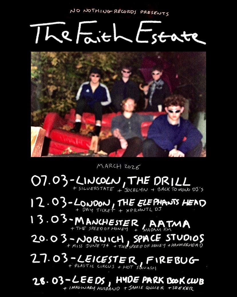 The Faith Estate have just announced their first headline tour after being signed with independent label "No Nothing Records". Come and see then before its too late.Support from Plastic Circus and Hot Squash
