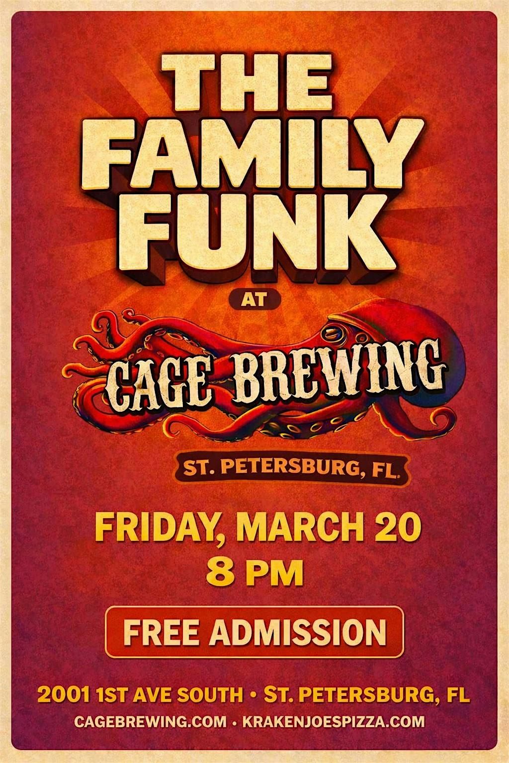 Get ready to groove with THE FAMILY FUNK in St. Pete, FL! Join us on Friday, March 20 at 8pm for an epic night of live funk music that’ll get you moving. This is an in-person event at the awesome Cage Brewing spot—perfect for good vibes and great brews. Don’t miss out on the fun!