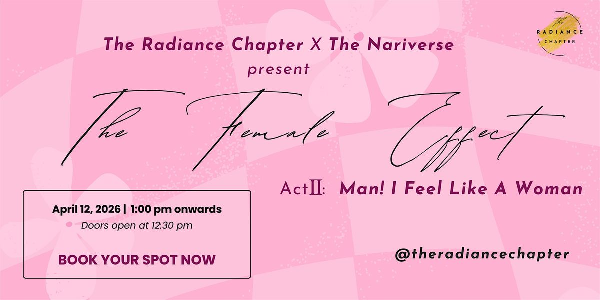 Introducing The Female Effect Act II: Man! I Feel Like A Woman by The Radiance Chapter . This year's event is aimed at opening a dialogue on women's health and wellness with a key focus on Fitness, Nutrition, Lifestyle and Longevity - Age/ ethnicity, race - no bar!