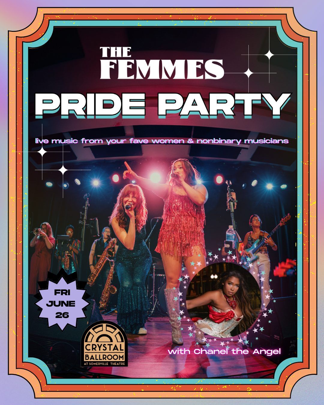 ✨ Experience the magic of The Femmes Pride Party, where moments become memories that last a lifetime! 🏛️ The iconic Crystal Ballroom at Somerville Theatre in Somerville, MA sets the perfect stage for an unforgettable celebration on June 25th, 2026 at 07:00 PM. 🌟 It's been a curated experience that brings together the best of entertainment and innovation, creating an atmosphere of wonder and excitement. From the moment you arrive, you'll be immersed in a world where the ordinary transforms into the extraordinary. 🎊 Book early to secure your place in what promises to be an event that will be talked about for years to come!http://maps.seatics.com/GeneralAdmissionEvent_2021-07-08_1017_12162022_112543_SVGC_tn.png
