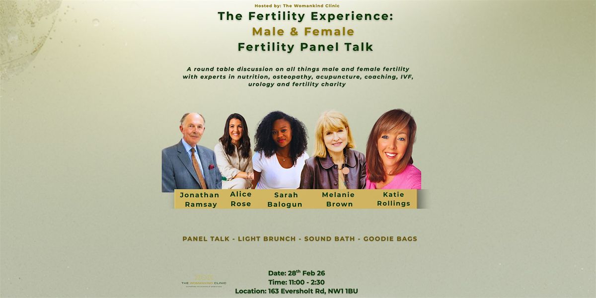 A table discussion on male and female fertility with experts in nutrition, osteopathy, acupuncture, coaching, urology and charity supportAgenda