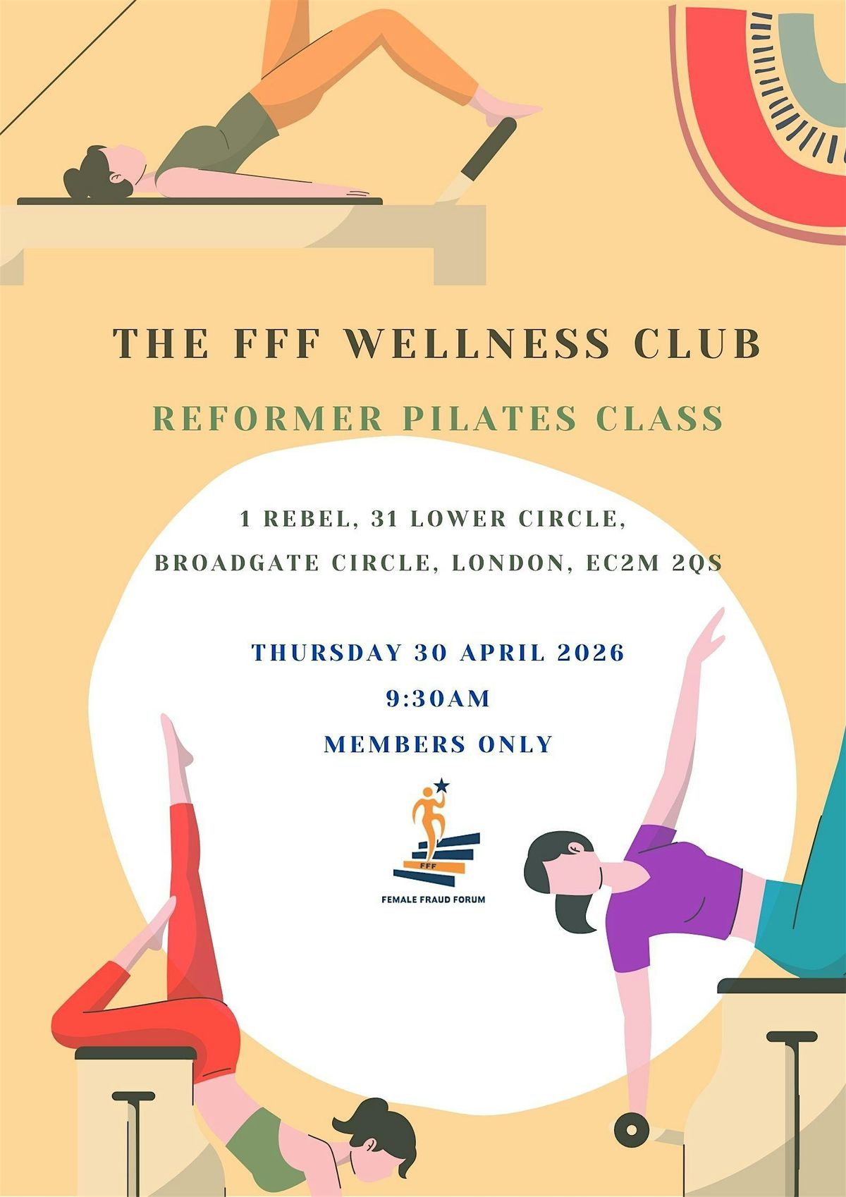 We are excited to invite you to our next wellness event. This time we are hosting a private Reformer Pilates class at 1 Rebel, 31 Lower Circle, Broadgate Circle, London, EC2M2QS.