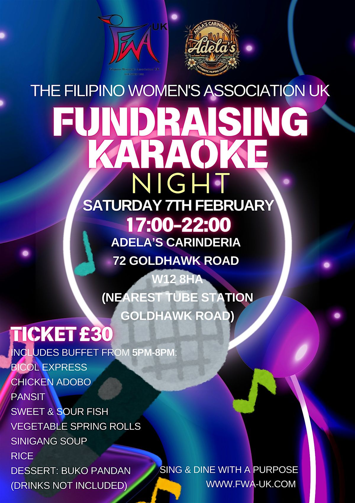 Get ready for a fun-filled evening with friends at the Filipino Women's Association UK's Fundraising Karaoke Night! Sing your heart out, enjoy great company, delicious food, and support a fantastic cause. Whether you’re a karaoke pro or just want to cheer on the singers, this in-person event is the perfect way to unwind and make a difference. Don’t miss out on the laughs, music, and good vibes. Limited tickets so get yours before they sell out. See you there!