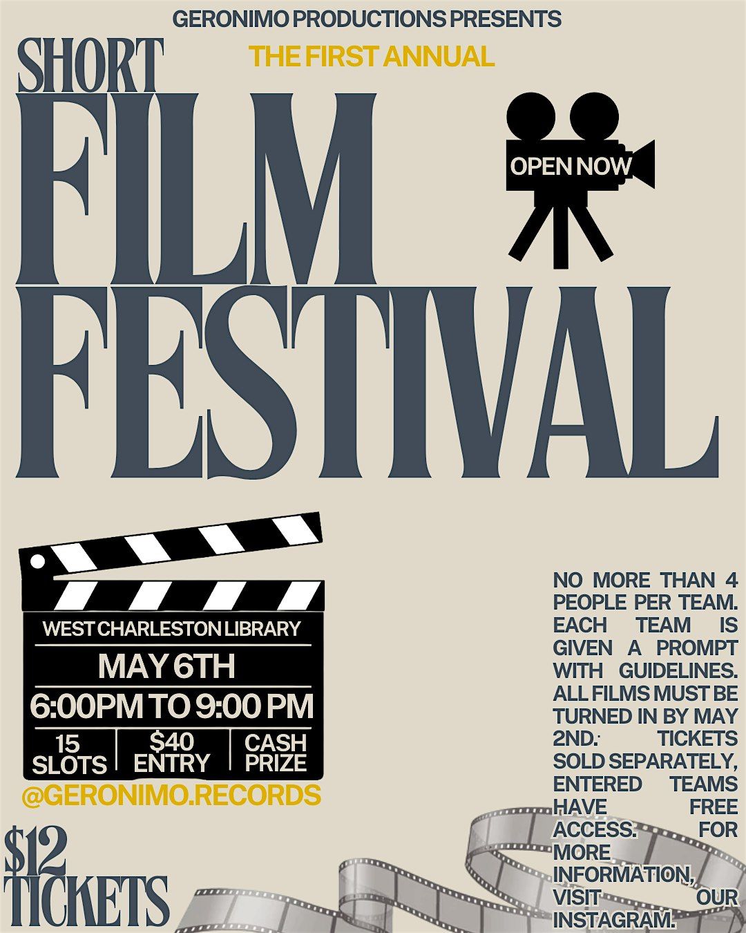 Geronimo Records presents the First Annual Geronimo Short Film Festival! A chance to show off your creativity and skills, competing against other teams for a cash prize! To participate, there will be15 different team slots. $40 entry fee. Tickets will be sold separately, ENTERED TEAMS HAVE FREE ACCESS. Voting will take place right after all films are shown, and YOU will be the judge. Each person in the audience will vote for who they think had the best film, winner takes all. Tell your friends, tell your family, and come prepared to win. For more information, any questions or concerns, please visit our instagram and feel free to reach out.