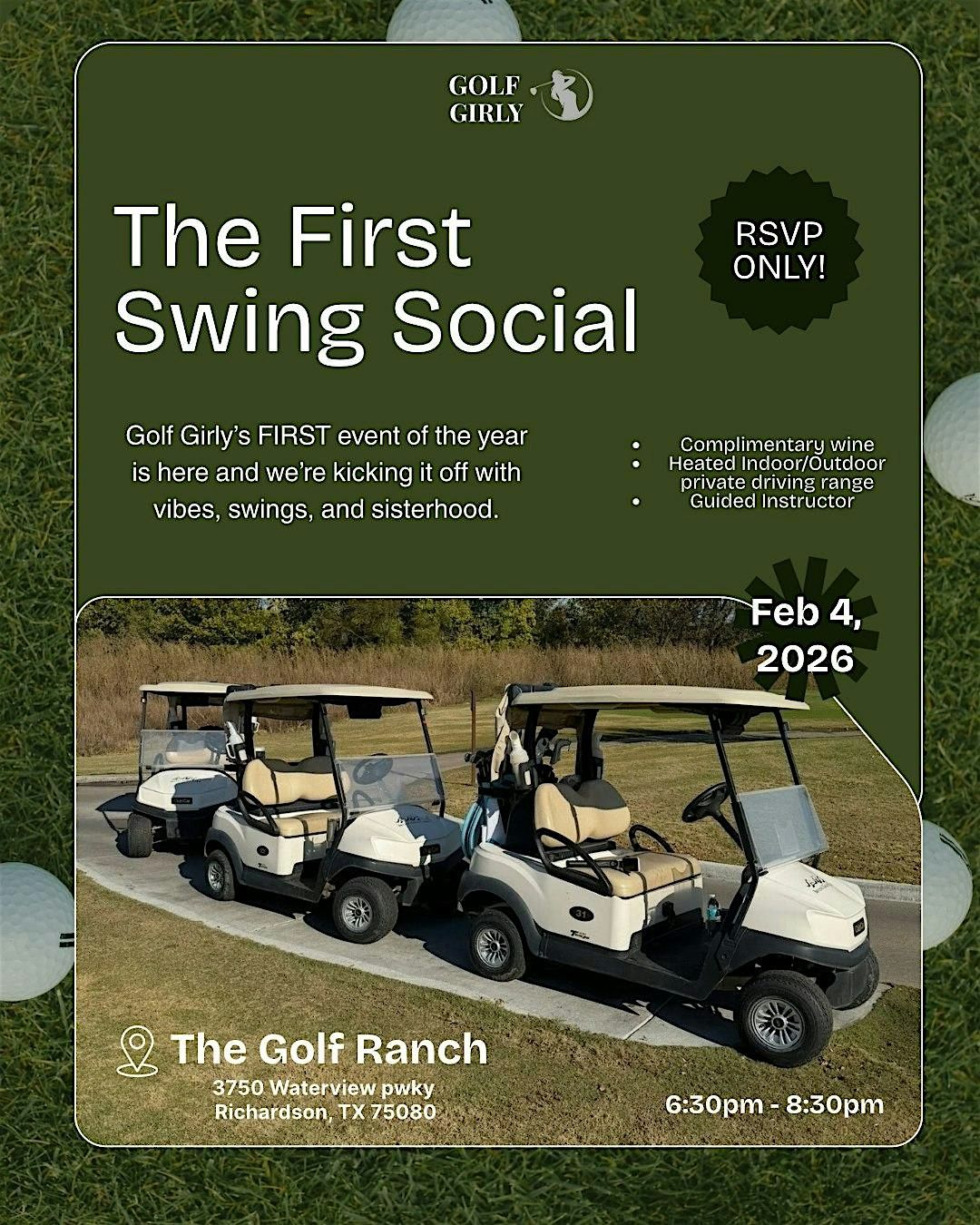 Join us for a Golf Girly's First Swing Golf Social - a fun experience designed to connect women through golf, vibes, and community. Whether you're a beginner or a seasoned golfer, come enjoy good energy, great company and your first swing of the season.