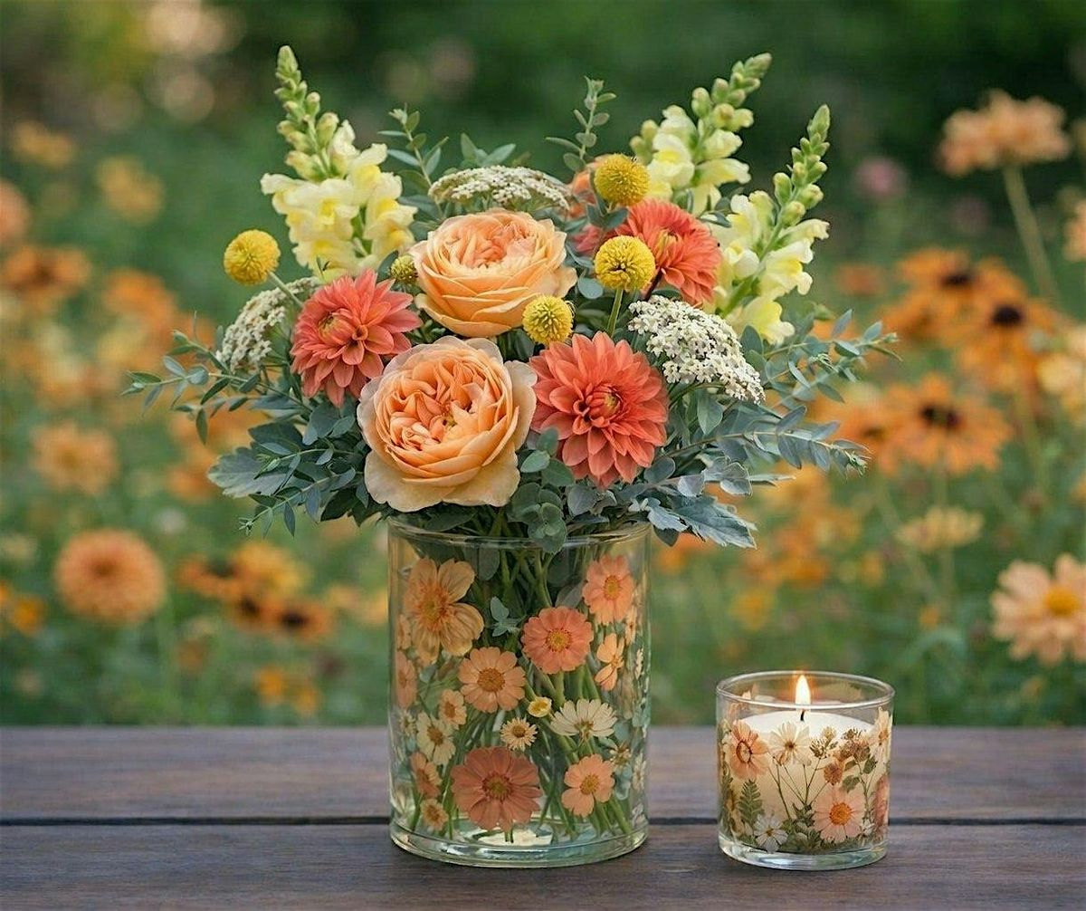 Join us for a fun and creative hands-on workshop where we transform glass vessels from basic to breathtaking --- glass vessels, pressed flowers, votive candles and other supplies included. A perfect gift for Mother's Day...just add her favorite flowers to the customized vase.