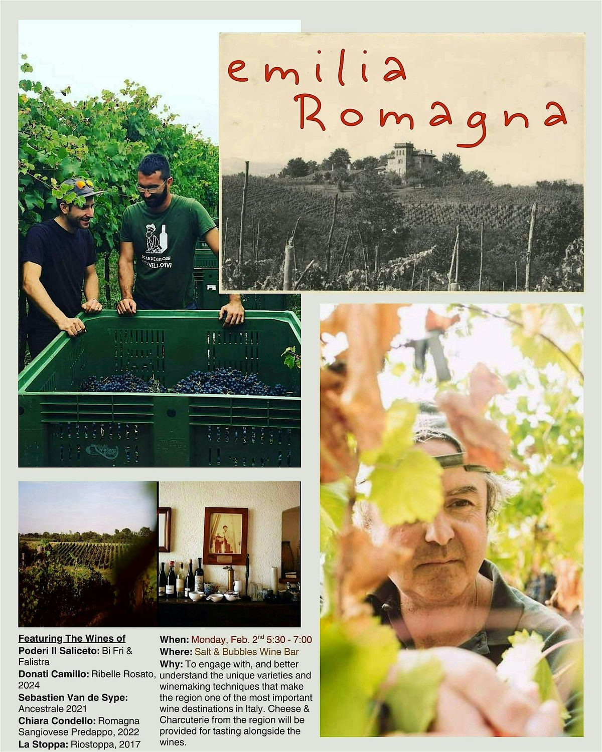 Often considered as “The Food Heart of Italy” Emilia-Romagna is a food and wine powerhouse. Known mostly for Lambrusco (though not exclusively) The wines of this region are Incredibly food friendly, steeped in tradition, and truly singular. Join us for a sit down tasting and discussion about various reasons these wines are so special, while also enjoying some snacks of regional specialties (Think Parmigiano, Prosciutto, Balsamico…) on Monday, February 2nd, 5:30-7:00. See you there!