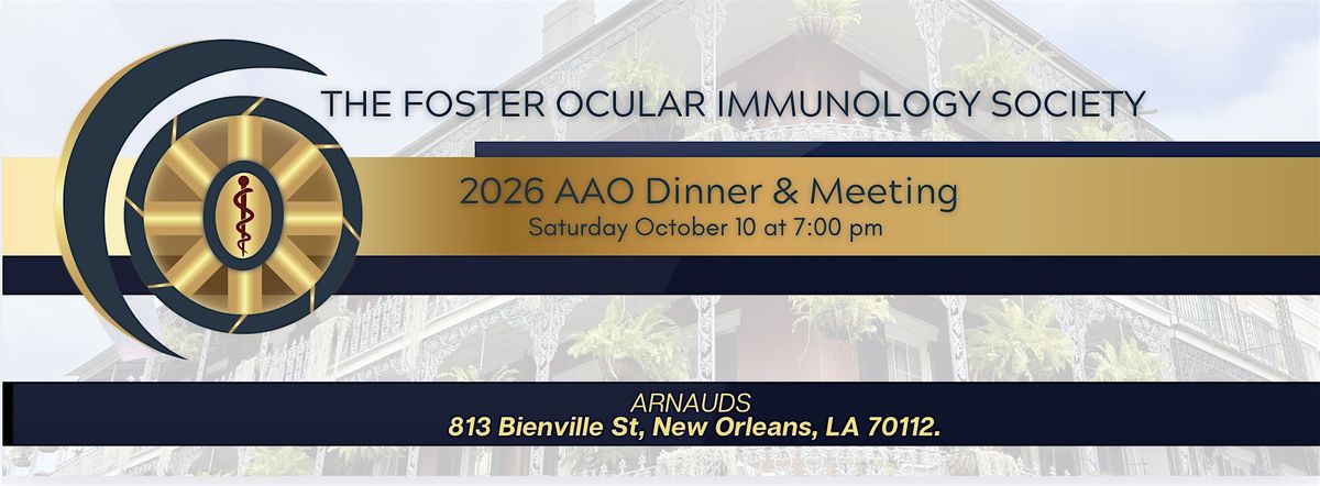 Join us for an exciting evening of networking and knowledge sharing at the Foster Ocular Immunology Society | AAO Dinner & Meeting. This in-person event will take place on Saturday, October 10 2026 at Arnauds