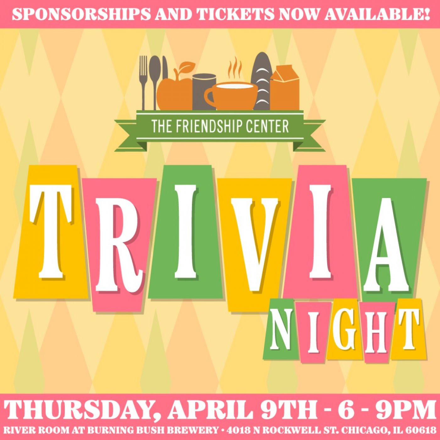 Join The Friendship Center in the fight against hunger at our second annual Trivia Night! While enjoying an evening of great food, trivia, split the pot, a cash bar, and amazing raffles, guests will get an opportunity to help generate 200,000 meals for our neighbors facing hunger. All event proceeds will help provide access to fresh food and vital resources to our estimated 70,000 neighbors facing hunger in Chicago’s NW neighborhoods. Tickets, which include food and trivia, are $45 for single tickets, $200 for a half table of five, or $400 for a table of ten.