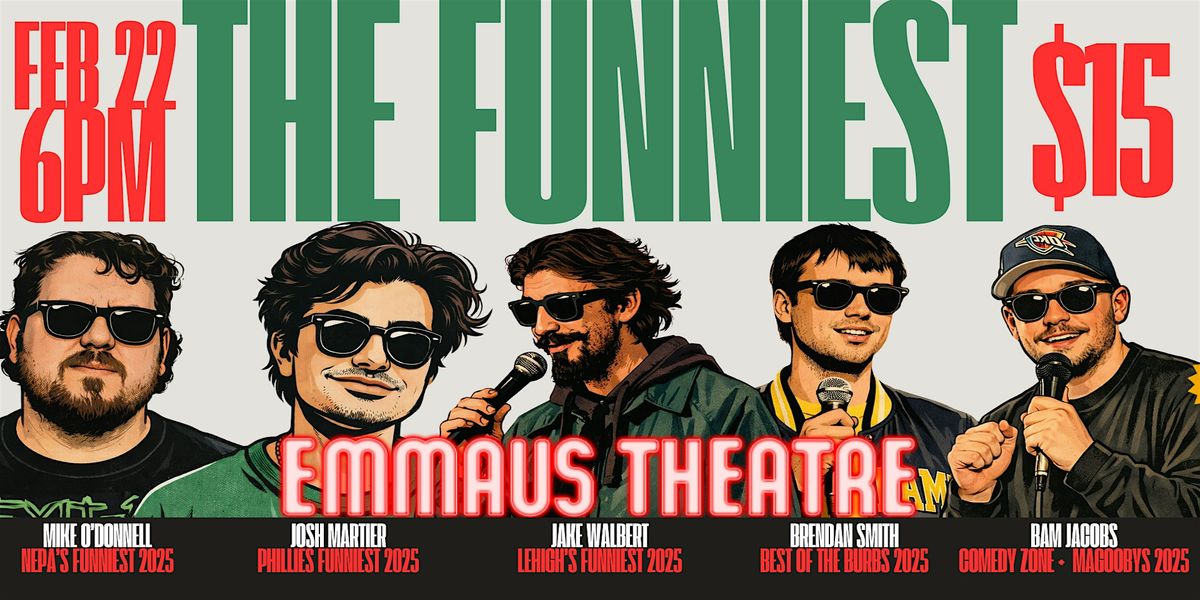 THE FUNNIEST brings together the absolute best of the region’s comedy scene for one night only. This all-star showcase features comedy contest winners from top clubs across Pennsylvania, each comic already crowned champion in their home territory — now sharing one stage.
