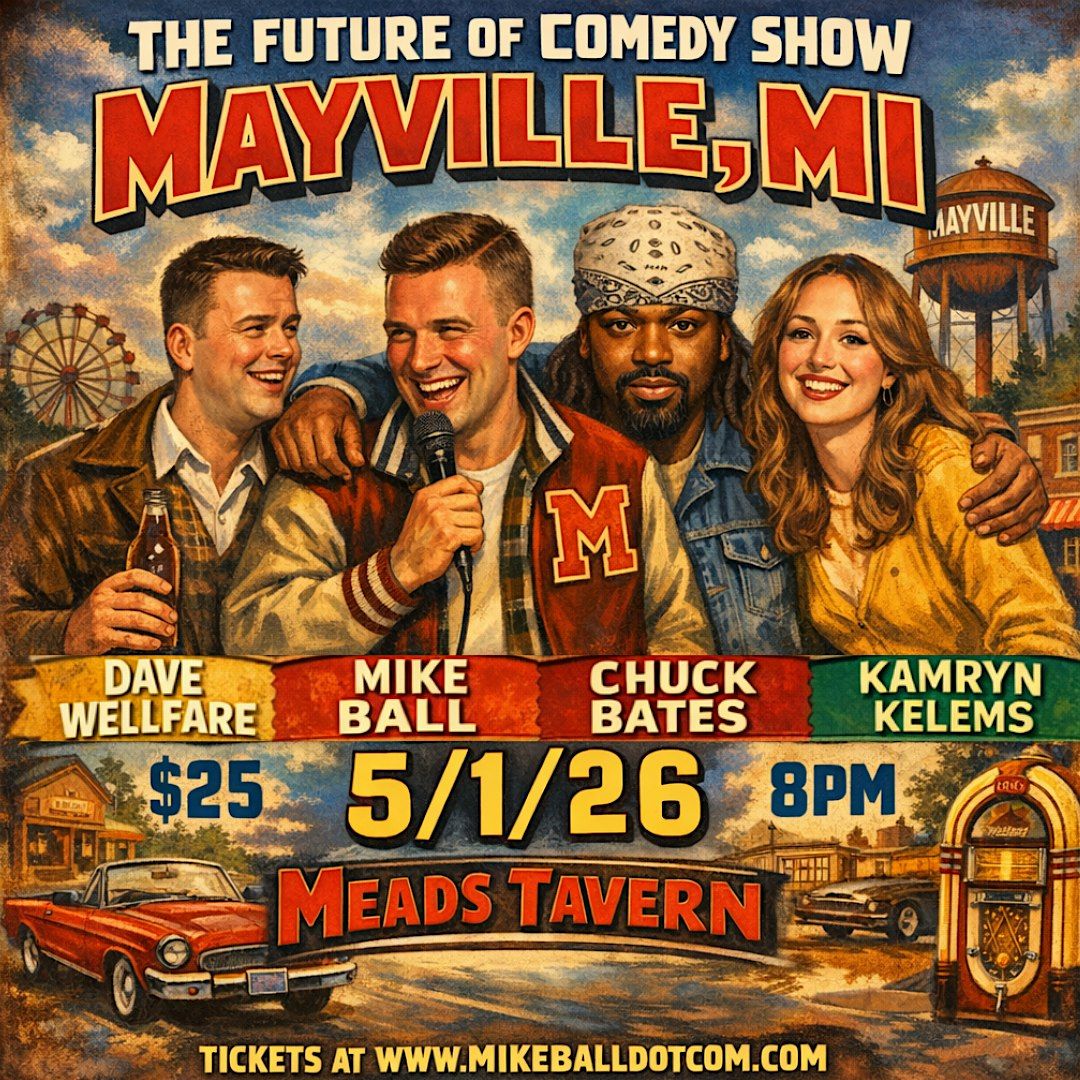 On this episode of The Future of Comedy Show we are back at Meads Tavern W/Nationally Touring Headliner, Mike Ball + FOCS favorites Dave Wellfare, Chuck Bates and Kamryn K!