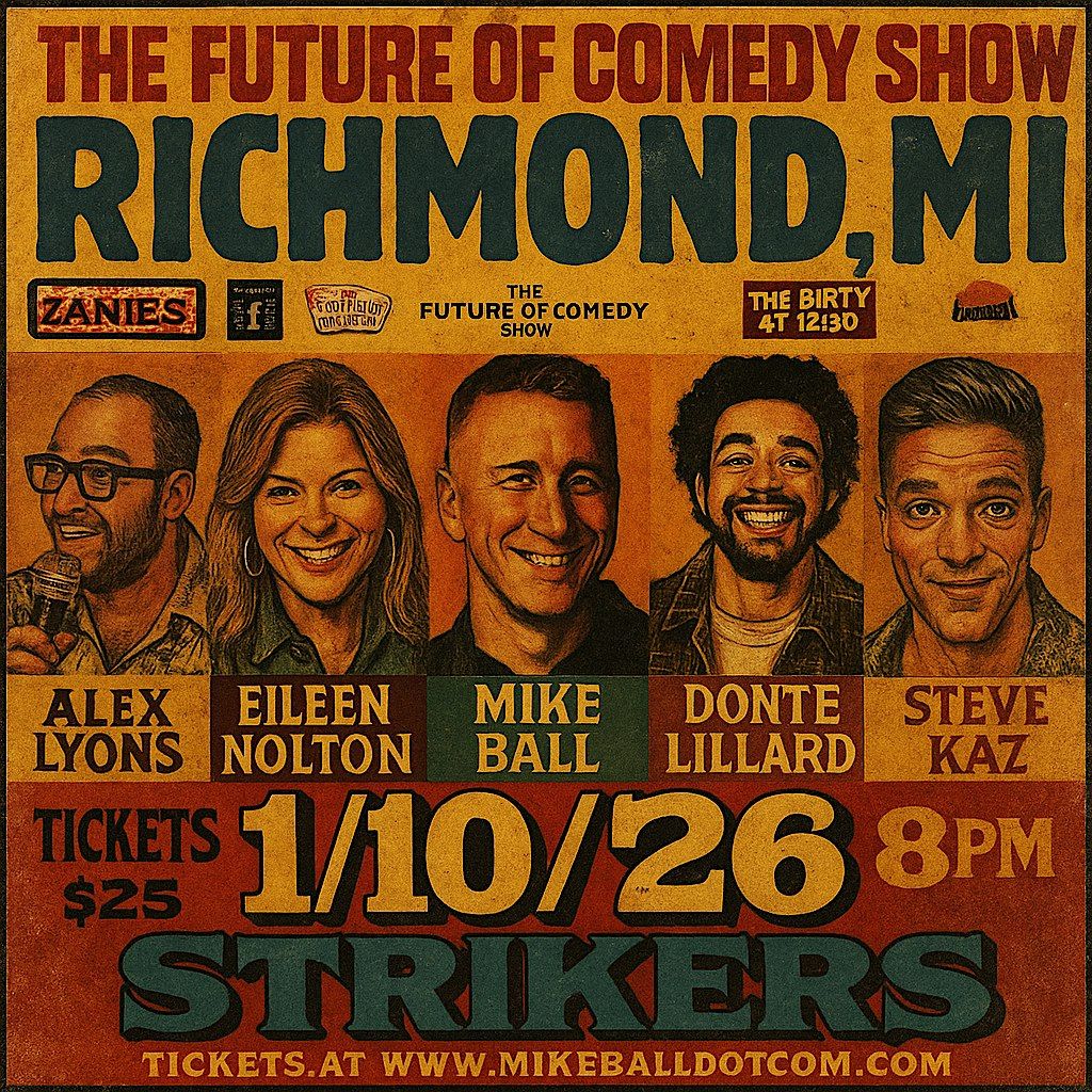 On this episode of The Future of Comedy Show we are back at Strikers W/Nationally Touring Headliner, Mike Ball + FOCS regulars Steve Kaz, Donte Lillard, Eileen Nolton + special guest Alex Lyons. Please remember doors open at 7pm and show begins at 8pm.