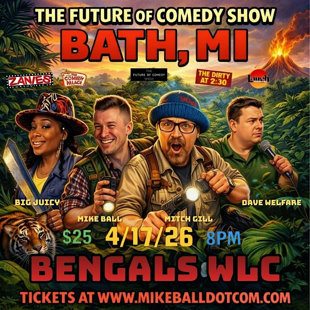 On this episode of The Future of Comedy Show we are back at The Bengal Wildlife Center with Nationally Touring Headliner, Mike Ball + FOCS Favorites Dave Wellfare, Big Juicy and Mitch Gill!