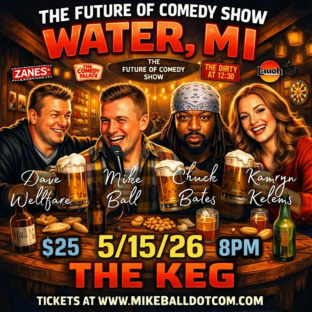 On this episode of The Future of Comedy Show we are making our debut at The Keg in Waters, Mi W/nationally touring headliner, Mike Ball + FOCS favorites Dave Wellfare, Chuck Bates and Kamryn K!