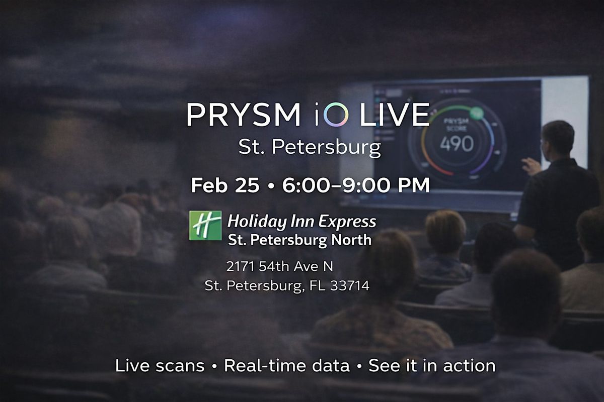 Experience the future of personalized wellness at this live PRYSM iO session in St. Petersburg. This in-person gathering offers a firsthand look at non-invasive technology that measures how lifestyle and nutrition are showing up in the body at the cellular level. Guests will see live scans, learn how to interpret the data, and discover how this insight is being used in real-world wellness settings and emerging models of care. Whether you’re simply curious or exploring what’s next in the wellness space, this is an opportunity to see the technology in action and understand the possibilities it opens