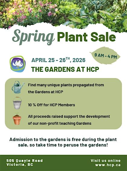 The Horticulture Centre of the Pacific (HCP) is hosting its annual Spring Plant Sale on April 25th and 26th, 2026, from 9:00 AM to 4:00 PM.