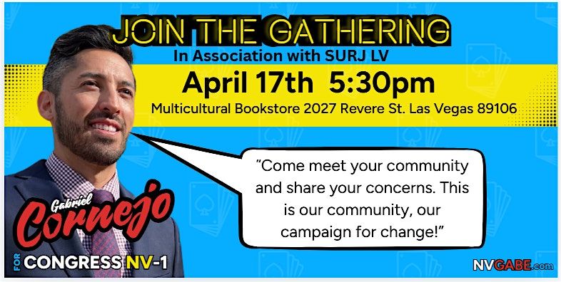 Get ready for An Evening With Gabriel Cornejo for Congress NVD1! This in-person event is your chance to connect, chat, and get inspired. Join us as we come together for a night full of energy, community, and real talk about making a difference. Don't miss out on meeting Gabriel Cornejo and hearing his vision for our future. See you there!