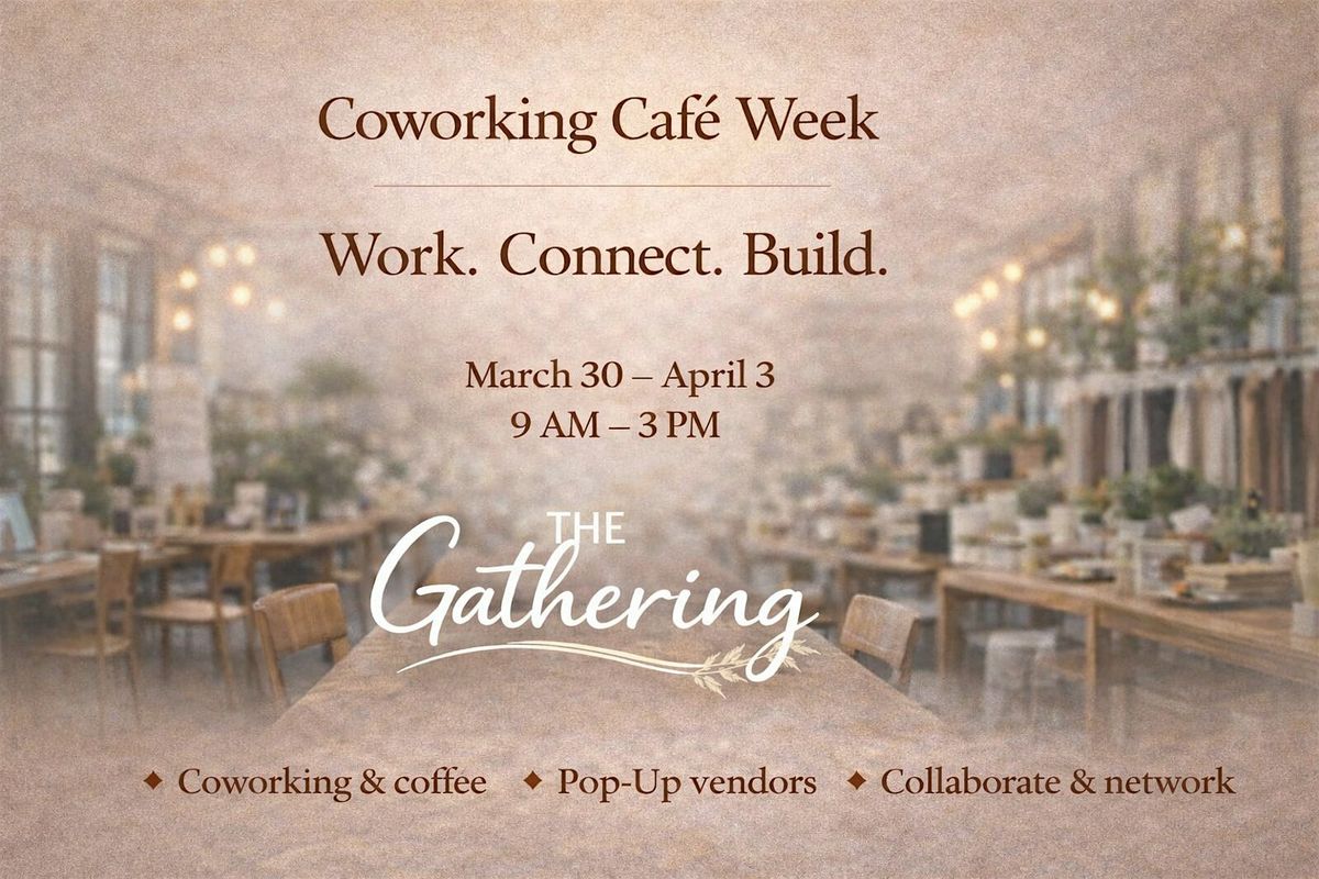 Join us for Coworking Café Week, a week designed for entrepreneurs, creatives, remote workers, and professionals who are looking for a space to work with intention while connecting with a like‑minded community.Instead of working alone, spend the week in an atmosphere that encourages focus, collaboration, creativity, and meaningful conversations.Whether you're building a business, studying, working remotely, or simply need a change of environment, this week is designed to help you stay productive while meeting new people.Throughout the week we will also feature The Gathering Collective Pop‑Ups, highlighting faith‑based brands, creatives, and small businesses from our community.Take breaks to discover new brands, support local entrepreneurs, and connect with others doing meaningful work.