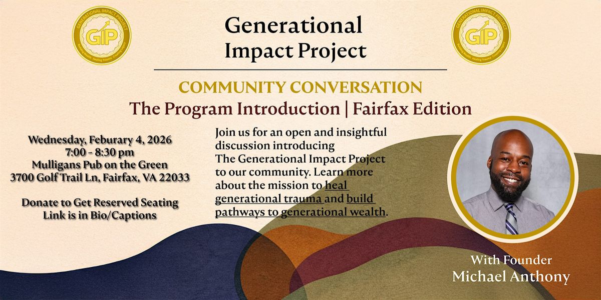 The Generational Impact Project (GIP) is a long-term initiative centered on addressing the intertwined realities of generational trauma and economic inequity within Black communities. This second Community Conversation builds on our first event and stands alone for newcomers. During this conversation, we will: