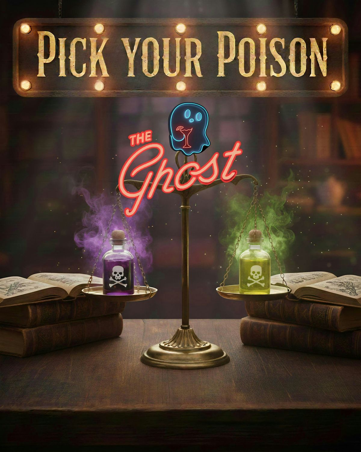 Pick Your Poison is an apothecary-inspired tasting that explores botanicals long feared as poisonous—bitter roots, forbidden spices, and misunderstood aromatics—made safe through careful preparation and precise dosing. Each drink plays with the thin line between danger and delight, reminding us that poison and potion are often the same thing in different proportions. All selections are served zero-proof by default, with the option to add alcohol for those who choose to go a little deeper into the shadows.