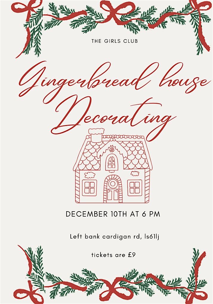 Welcome to The Girls Club Gingerbread Decor event! Get ready for a fun-filled evening at Left Bank Leeds on December 10, 2025 at 6:00 PM . Join us for a delightful time of gingerbread decorating and festive cheer. Bring your creativity and holiday spirit as we decorate gingerbread houses together. It's the perfect way to kick off the holiday season. Don't miss out on this sweet event!