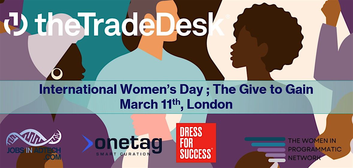The Women in Programmatic Network and The Trade Desk invite you to an exclusive event centered around the theme: Give to Gain. This year, we’re honouring the spirit of IWD by investing in each other’s career journeys and supporting women entering the workforce.
