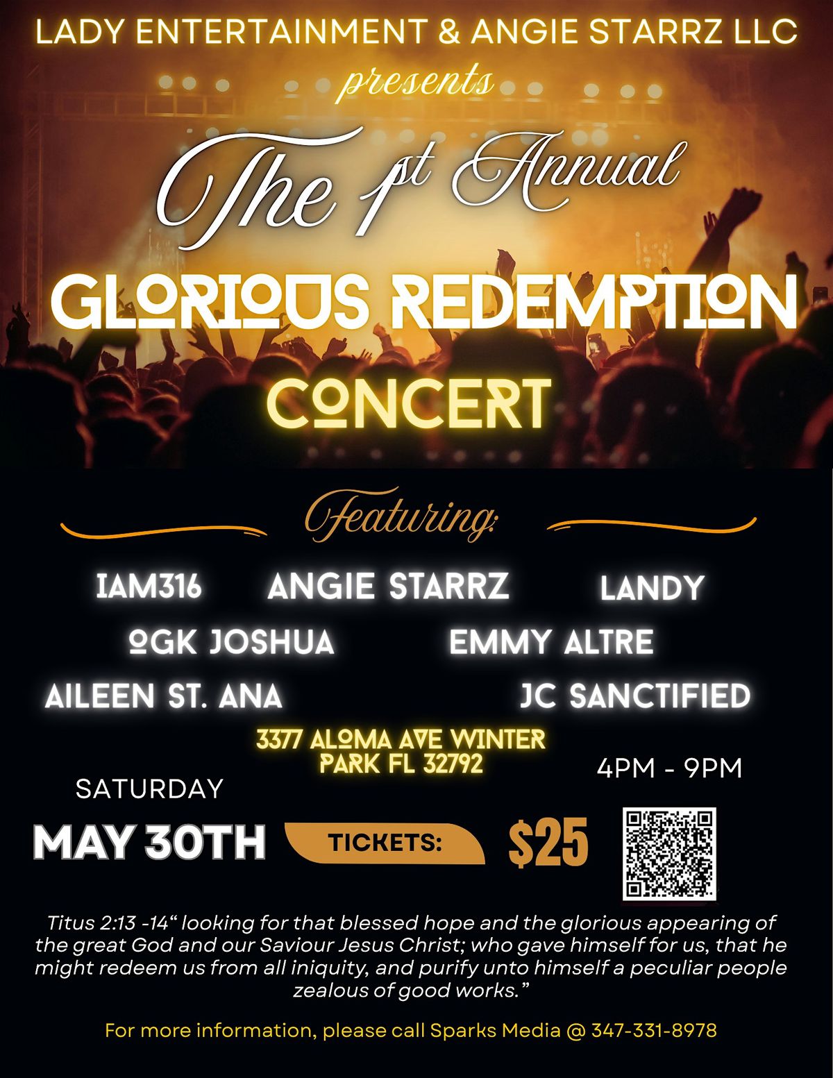 A powerful night of music brings together contemporary urban Christian sounds with heartfelt messages of redemptio, hope, and spiritual renewal. This is more than a concert-it's a moment of reflection, celebration, and reconnection with God through music that speaks to the soul.