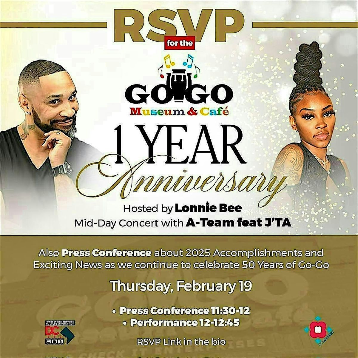 Join us in celebrating the 1-year anniversary of The Go-Go Museum & Café! On Thursday, February 19th, we are holding a press conference to highlight our 2025 accomplishments and what we have in store for 2026 as we celebrate 50 years of Go-Go. February 19th marks both the opening of the museum in 2025, and the moment Go-Go music became the official music of D.C in 2020.