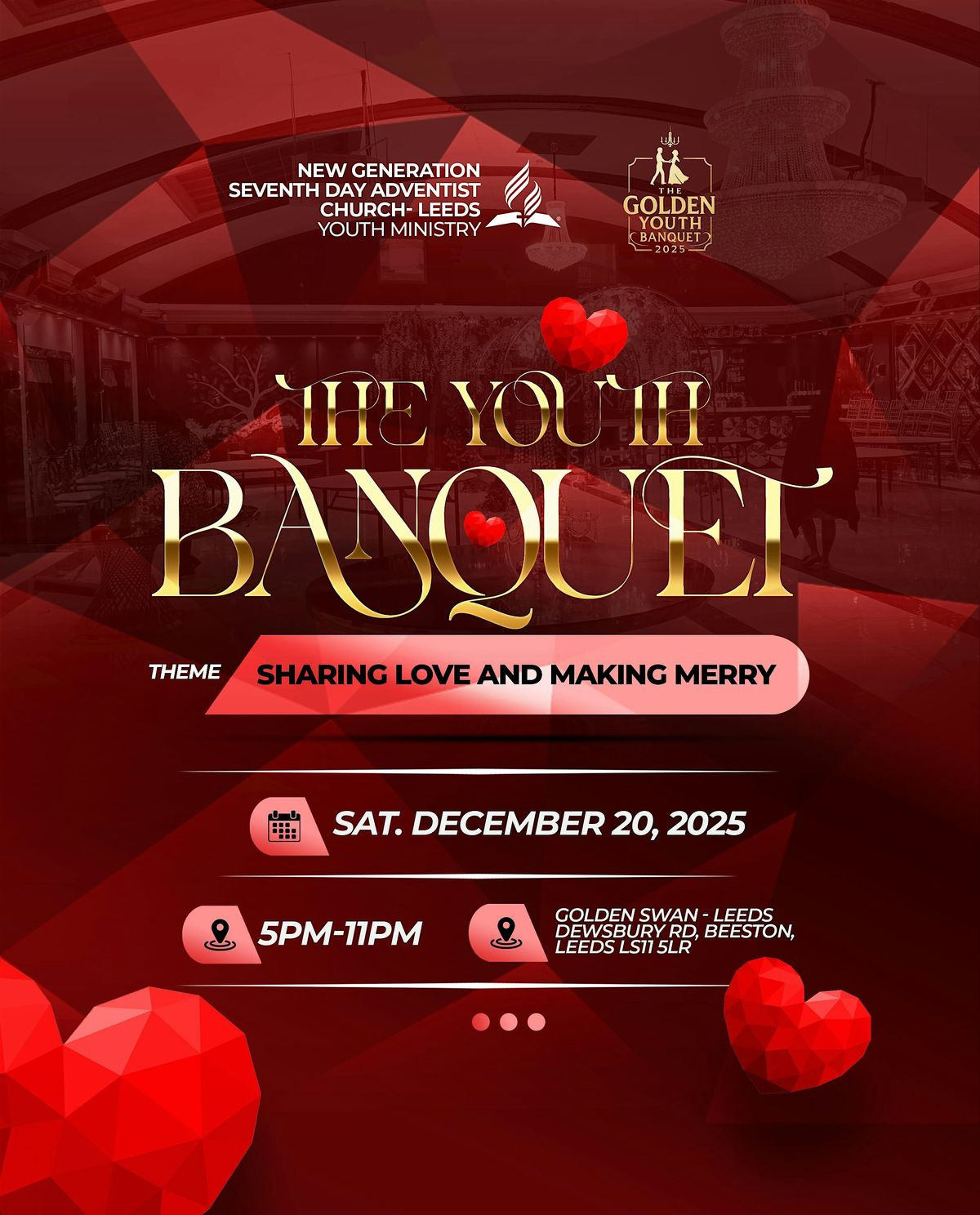 Get ready for an unforgettable evening of faith, fellowship, and celebration! The Golden Youth Banquet brings together youth for a powerful blend of spiritual inspiration, social connection, and joyful Christian community. Enjoy a beautifully curated night filled with music, uplifting moments, great company, and a delicious menu-crafted to create memories that last a lifetime.
