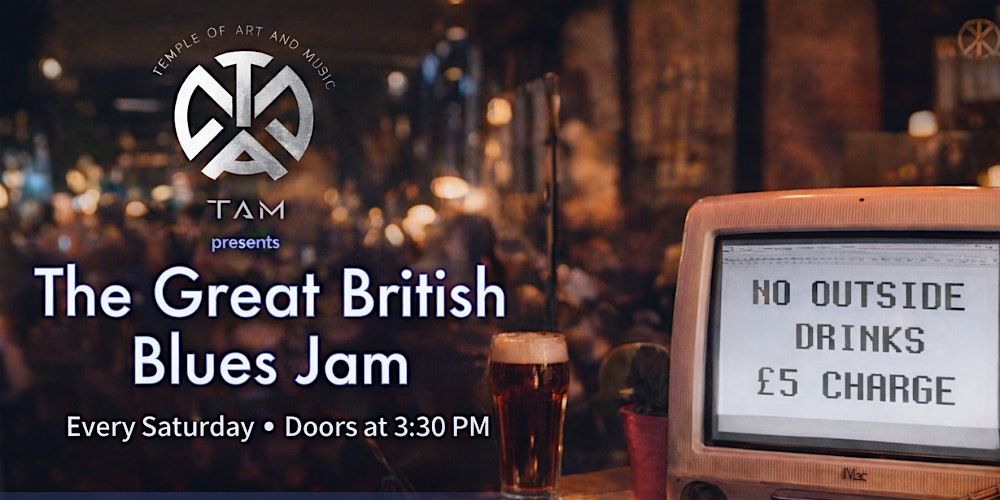 A relaxed, high-energy Blues jam led by experienced musicians, celebrating the spirit of Great British Blues in a friendly, buzzing atmosphere.