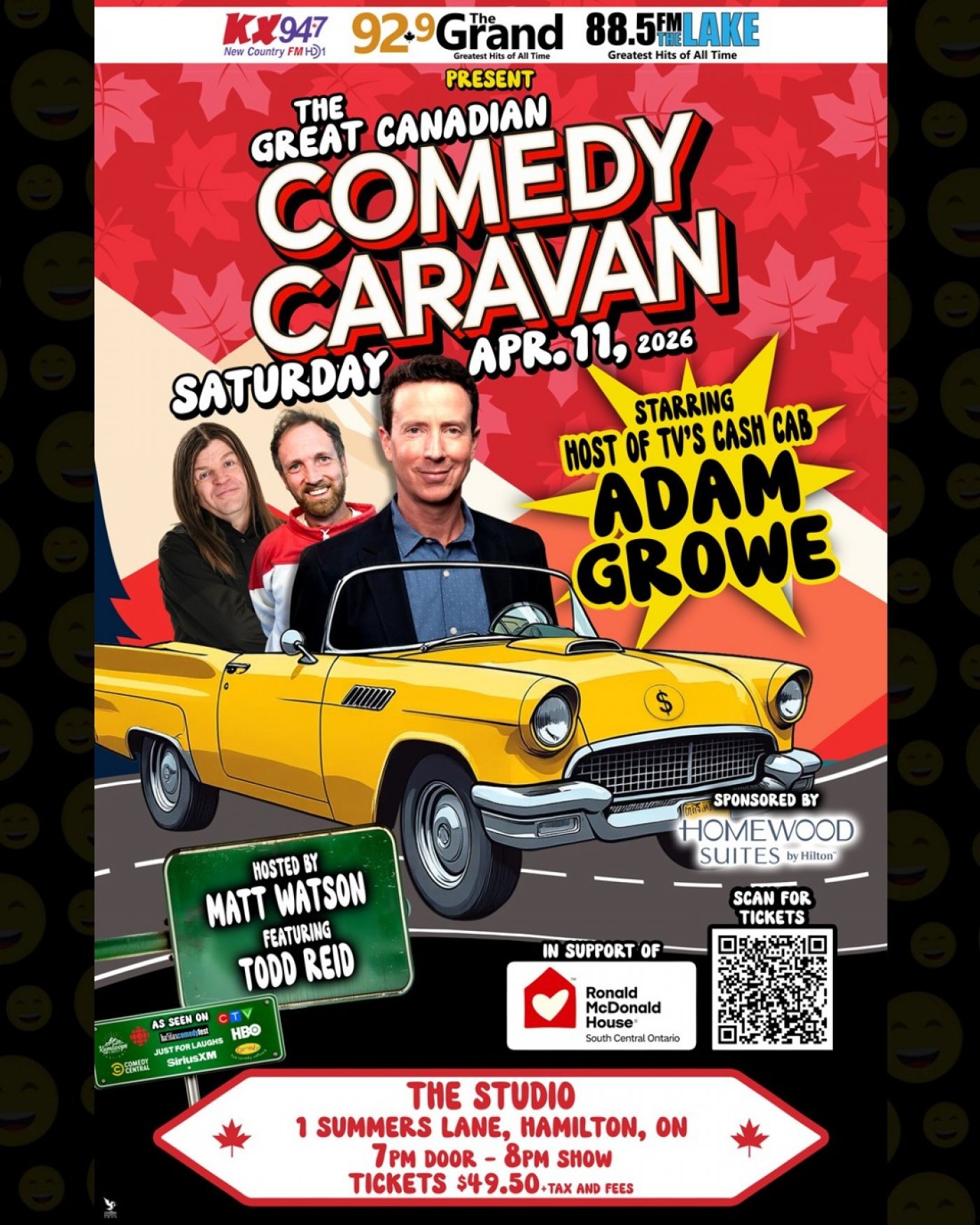 The Great Canadian Comedy Caravan Tour is rolling into the Studio Theatre at the Frist Ontario Concert Hall for their benefit gala with Ronald McDonald House South Central Ontario on Friday April 11th!